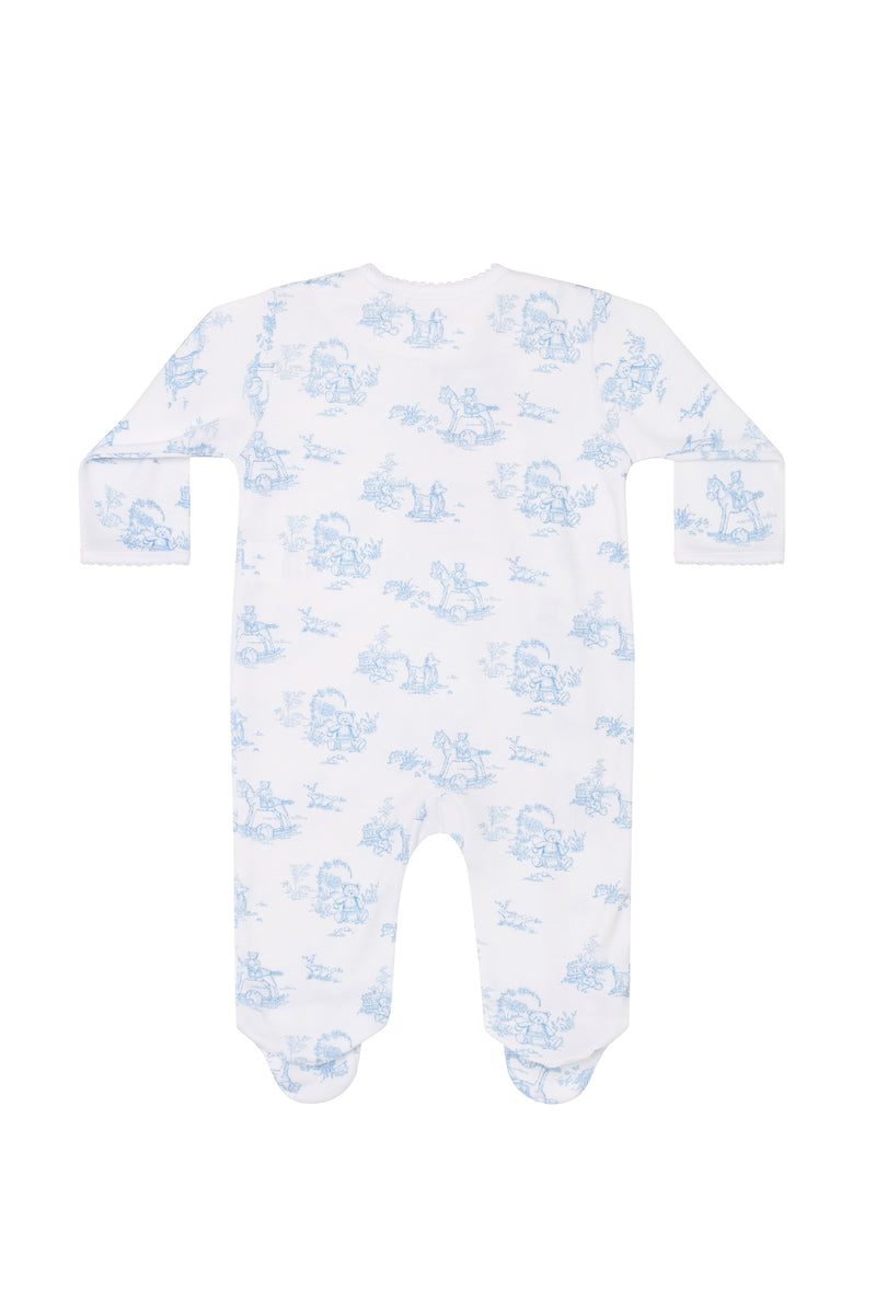 Discover the ultimate comfort and style with the Blue Toile Crossover Footie. Crafted from premium Peruvian Pima Cotton, this footie ensures a soft touch that is gentle on your baby's delicate skin. The crossover design offers convenience, making dressing your baby a breeze.