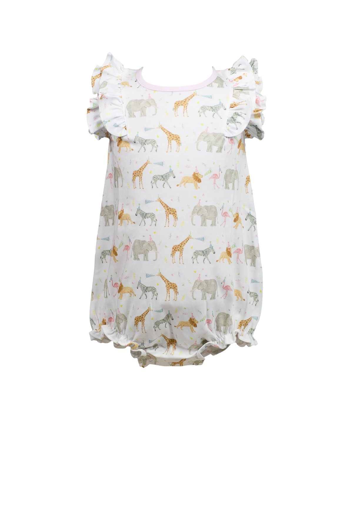 Dress your little one in the playful and charming Party Animal Girl Bubble, perfect for adventures at the zoo, birthday celebrations, or fun park outings. This delightful piece is part of the Party Animal collection, crafted with attention to detail and comfort in mind.
