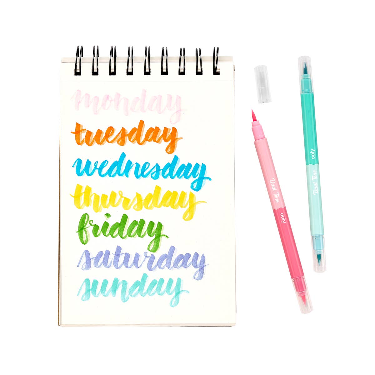 This set of 12 brush markers gives you double the color options. One end of the dual ended marker has a darker color-the other end a lighter complementary color. Brush markers are great for art and craft projects, creating elegant writings or colorful doodling. All 24 brush marker colors feature acid free inks. 24 Different colors in 12 markers Brush tip markers Acid free inks Suitable for ages 6 and up