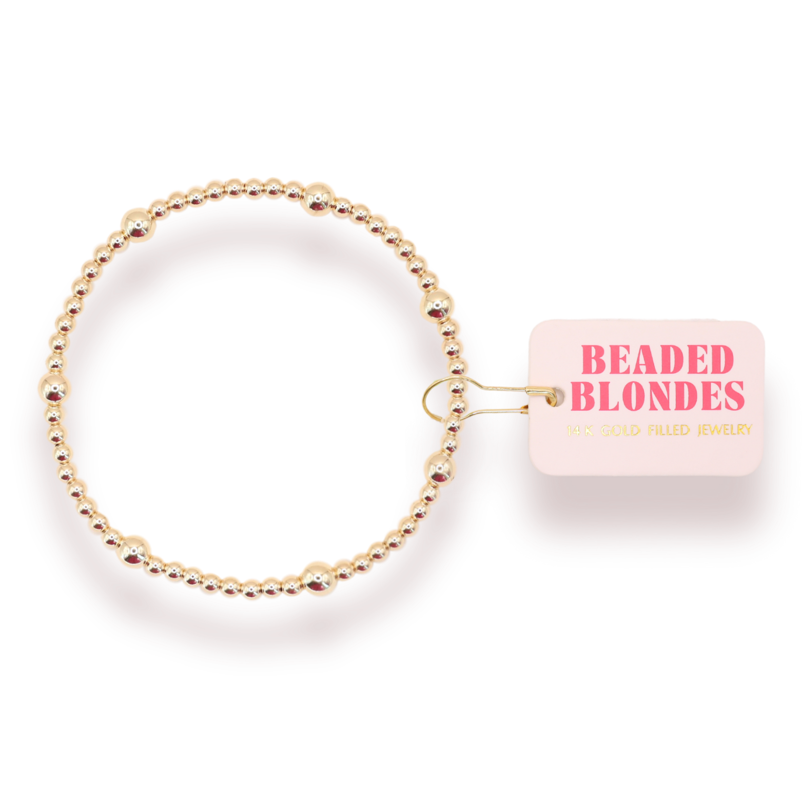 This is a mix between our 3mm and 5mm 14k gold-filled beads. So dainty and so sweet!  Made from 14 k gold filled beads so perfect for everyday wear! Sweat proof, water proof and tarnish free! Handstrung with love in College Station, Texas.