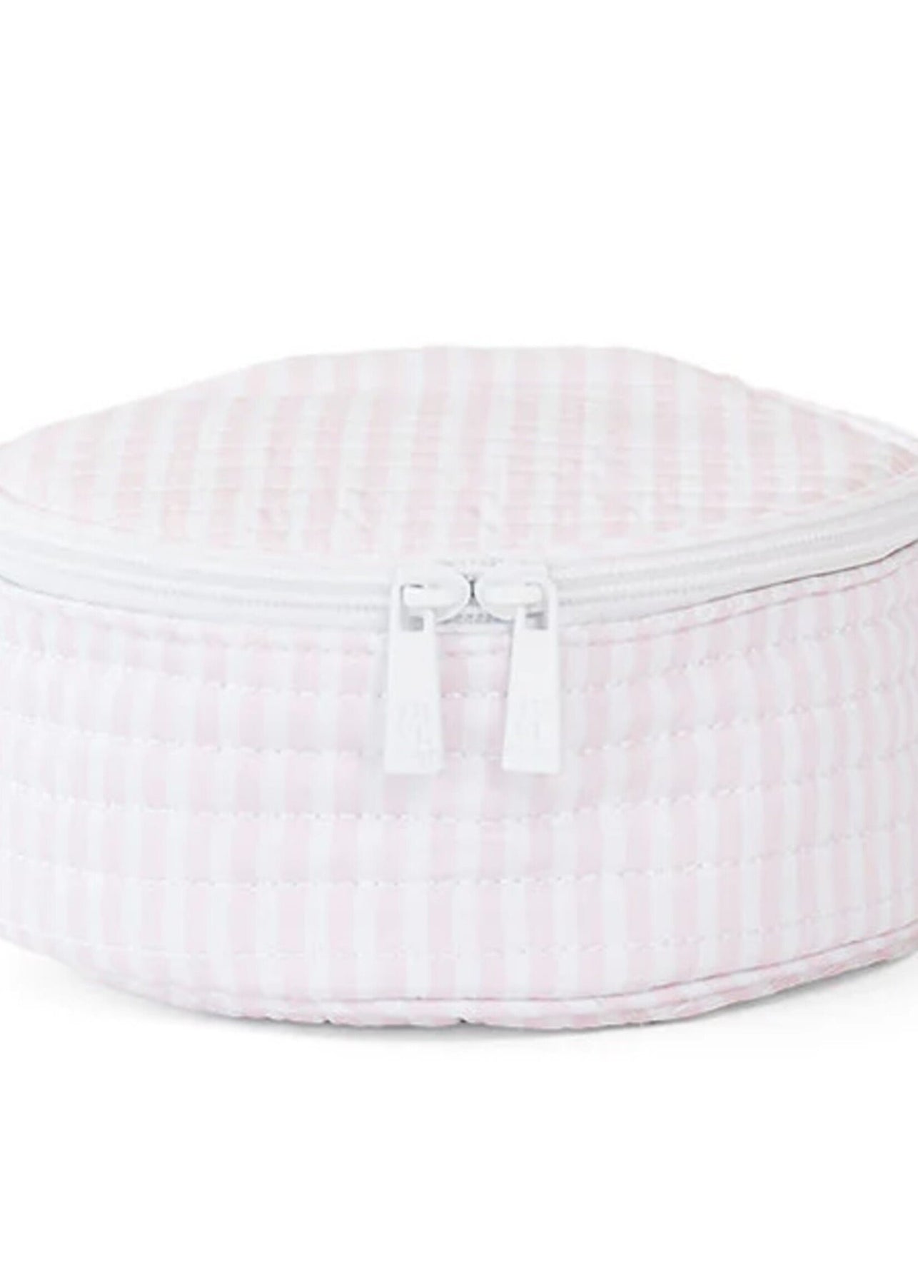 The Quilted Jewelry Round in Pimlico Stripe Pink offers a stylish and practical solution for storing your jewelry. Designed by TRVL Design, this case is lightweight and easy to carry, making it perfect for travel or home use.