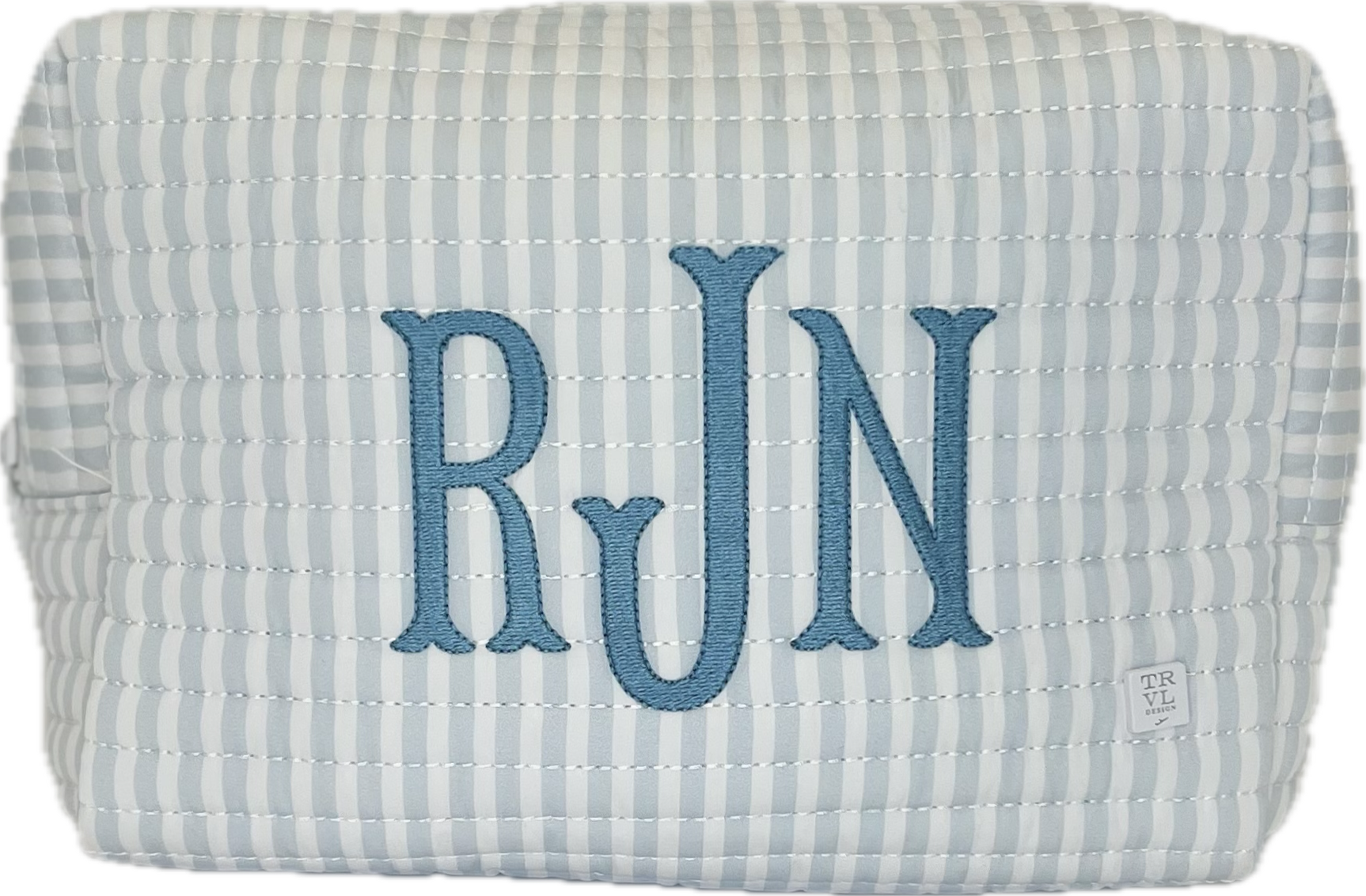The Quilted Everyday Bag in Pimlico Stripe Light Blue is the perfect accessory for those who need versatility in their day-to-day activities. This large, soft, and lightweight quilted pouch is ideal for holding diapers, wipes, toiletries, cosmetics, and more. Its design allows it to stand independently, making it both functional and stylish.